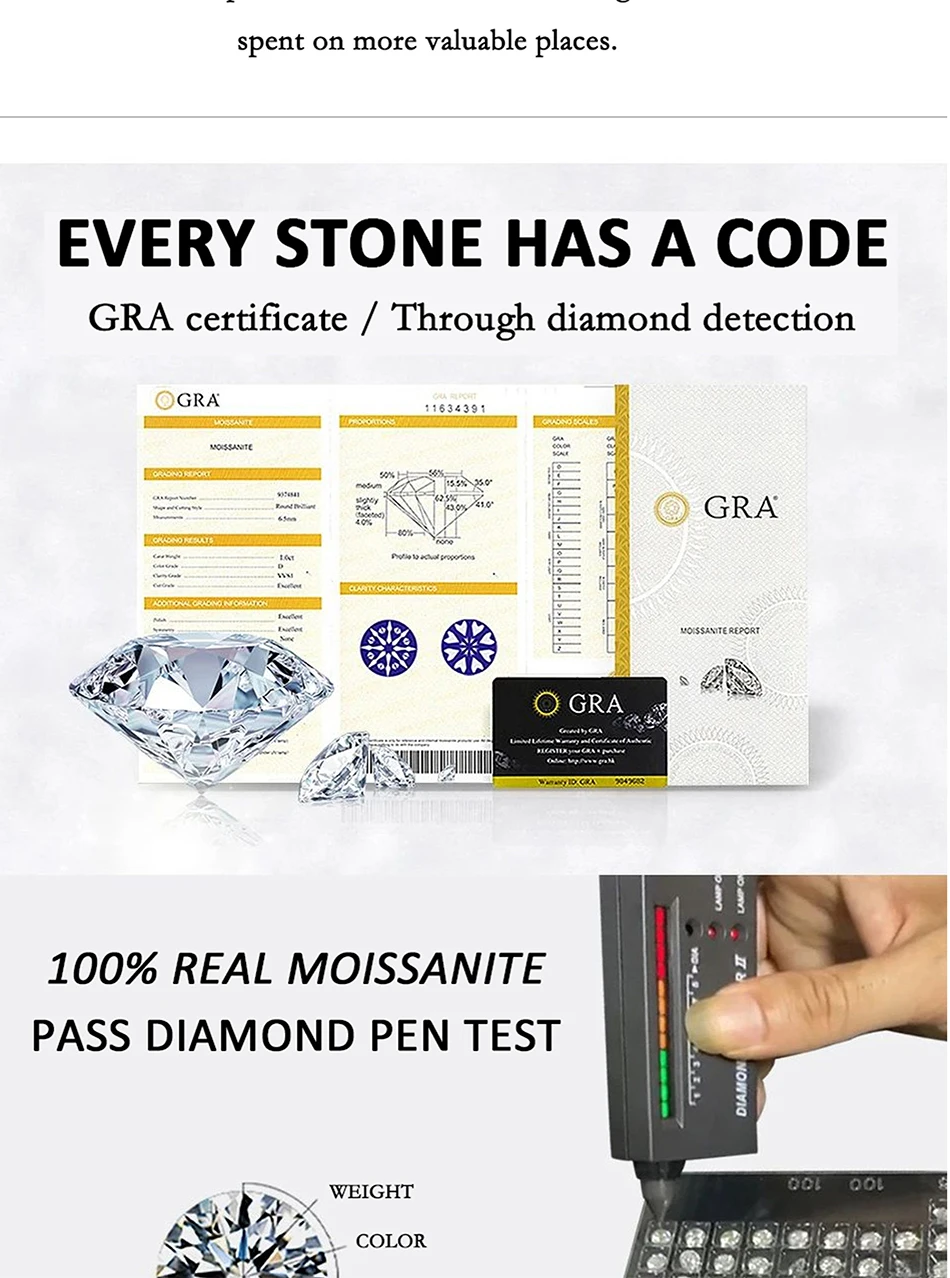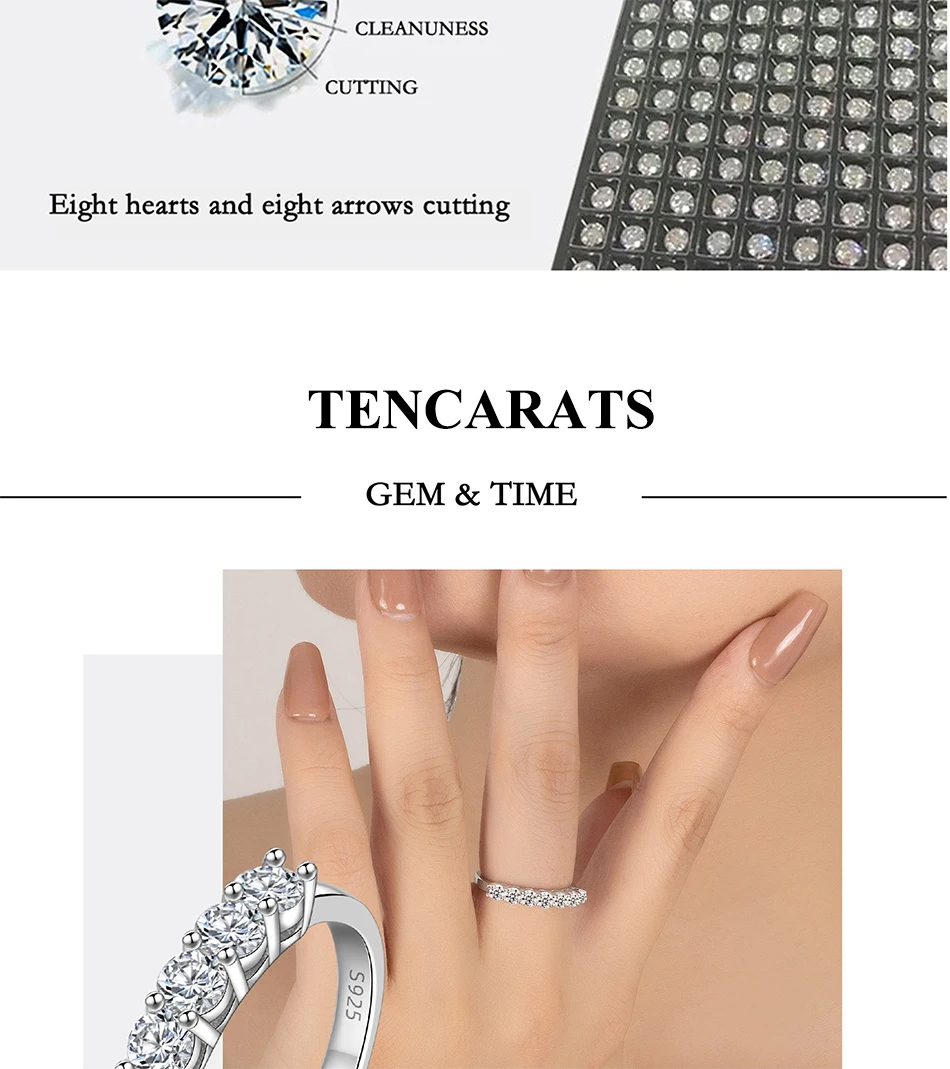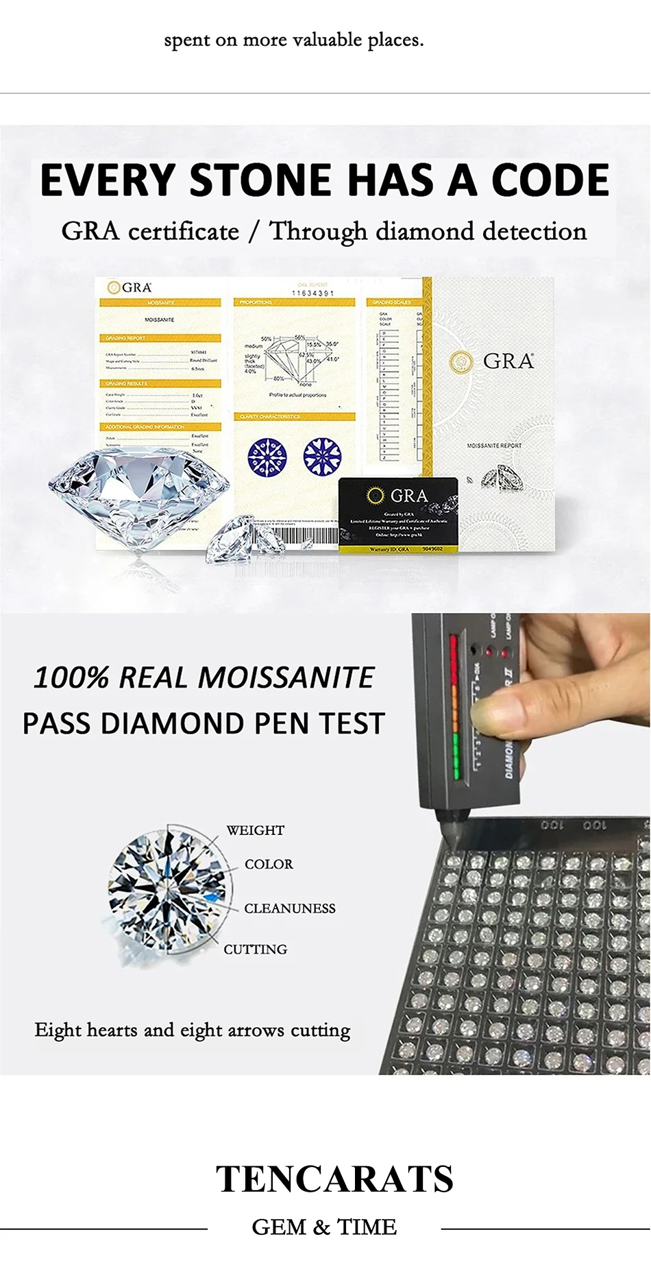 【100% Real Moissanite 】TENCARATS moissanite ring is a high-quality laboratory-grown gemstone. All the moissanites have a D COLOR VVS1 grade of clarity. Their brilliance is 2.5 times that of other gemstones, and their hardness level is 9.25, making them extremely durable and bright.