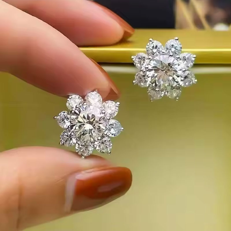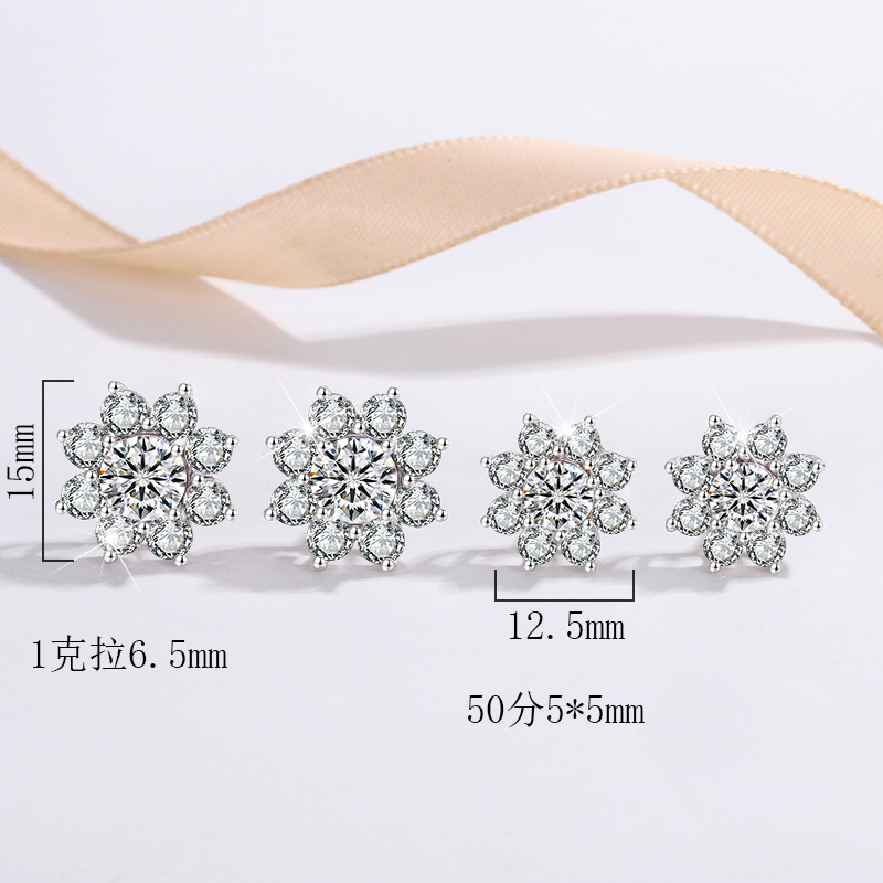 Moissanite Flower Stud Earrings Sterling Silver Sparkling Floral Design Elegant Jewelry for Women Wedding Party Gift