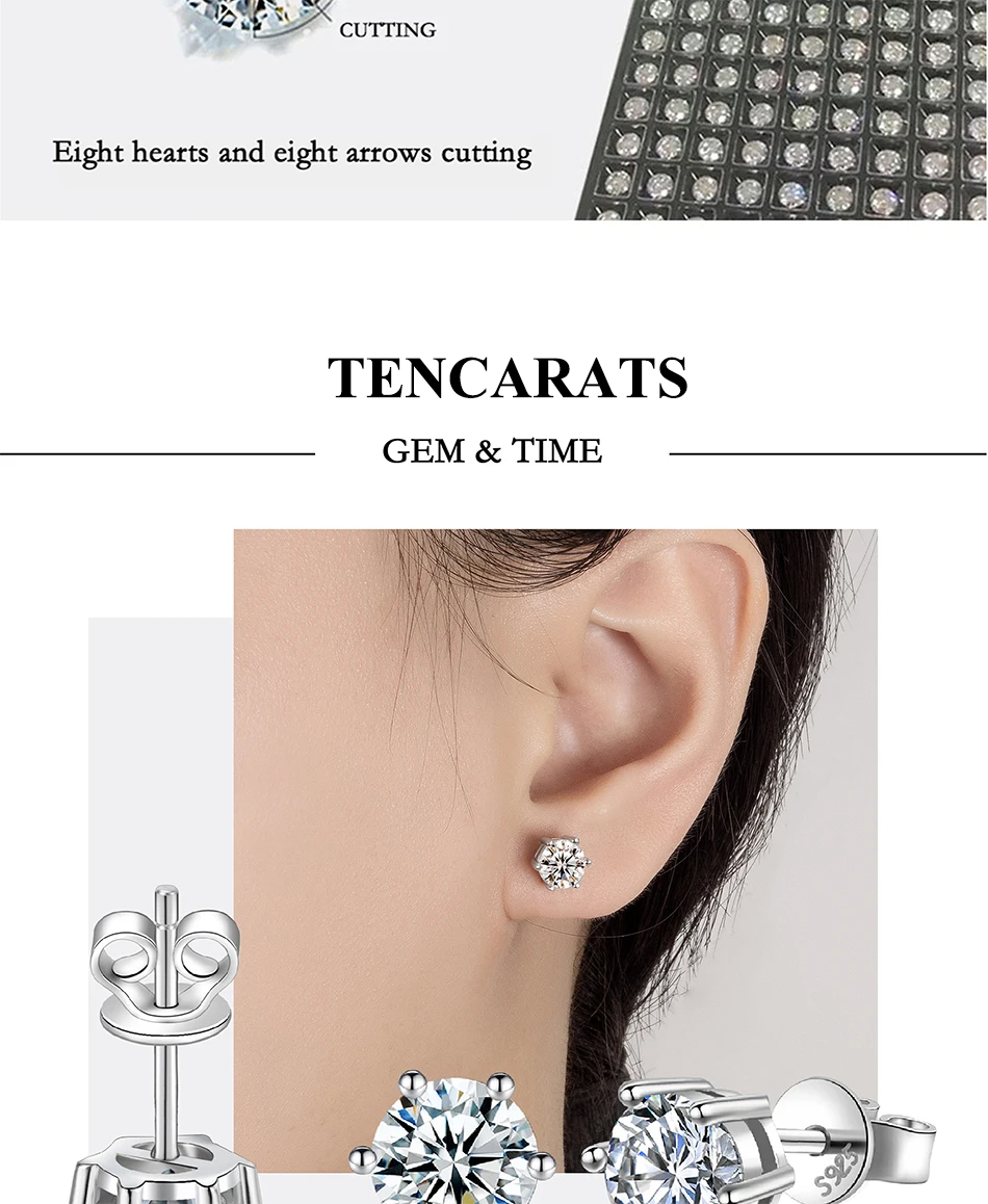 【100% Real Moissanite 】TENCARATS Moissanite are high-quality lab-created stones. All Moissanite stones feature D COLOR VVS1 clarity. They exhibit a fire that is 2.5 times that of other stones, with a hardness rating of 9.25, making them exceptionally durable and brilliant