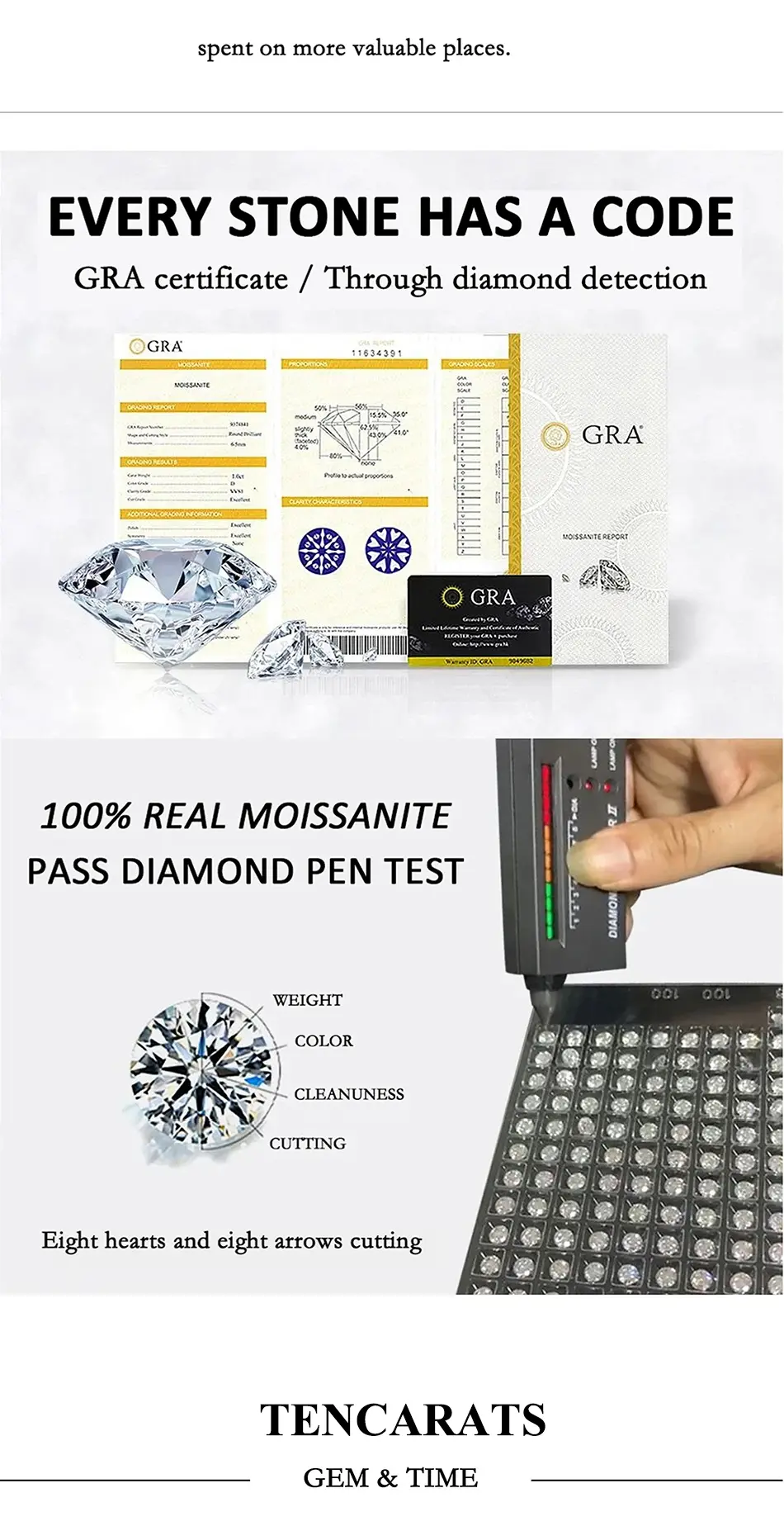 Choosing ten carats is not only a shrewd consumption, but also an expression of a wise attitude towards life and values: Shining requires no compromise. We believe that beauty and value can be achieved simultaneously. Moissanite enables you to achieve a brilliant luster that is no less brilliant in a wise way, without having to pay the premium of traditional diamonds. We are a factory specializing in the production of moissanite and 100% S925 sterling silver jewelry, with 18 years of experience. Our professional team and technology have won high praise from a large number of customers!