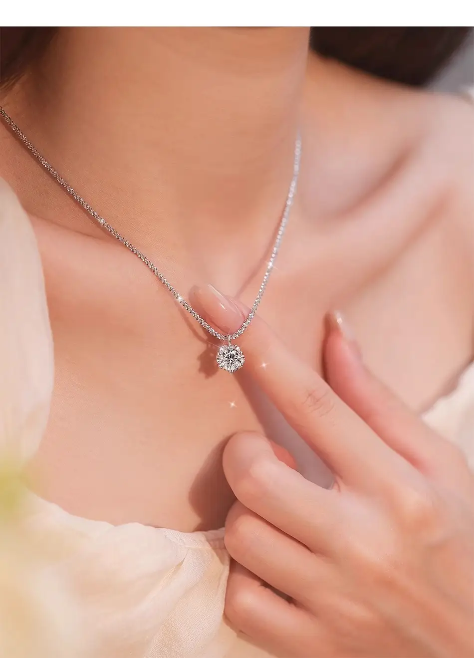TEN CARATS S925 Sterling Silver VVS1 Moissanite Classic Women’s Necklace Birthday Party Gift GRA Certified Jewelry